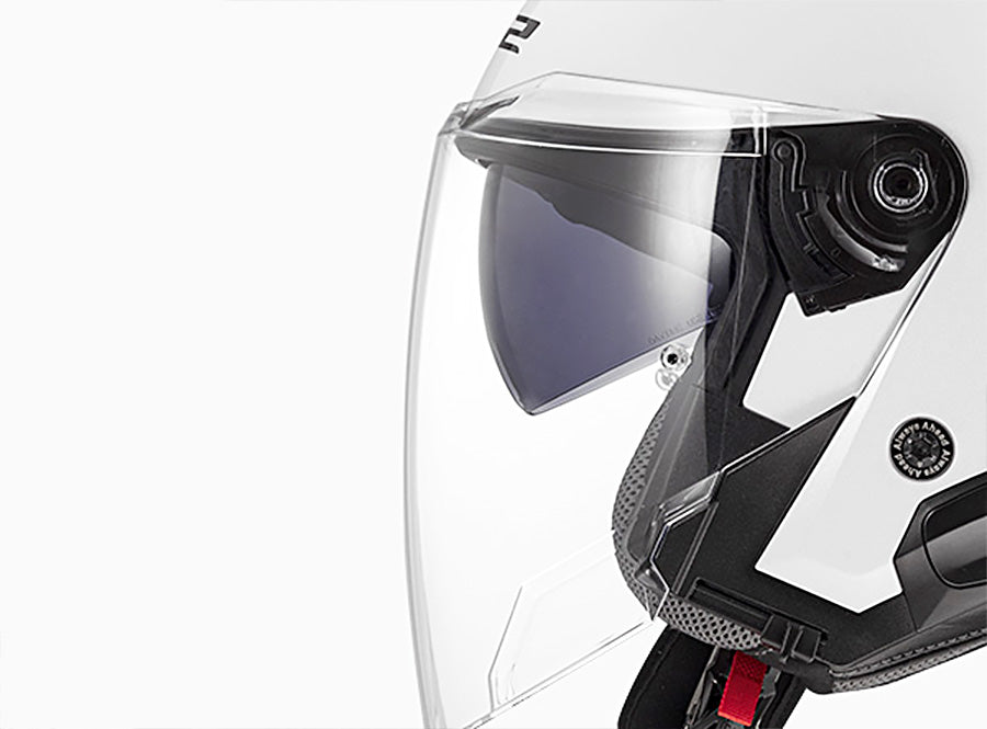 LS2 Verso II trang bị kính chắn lớn cho tầm nhìn rộng, kèm kính râm (Sun Visor) gập trong thao tác nhanh, bảo vệ mắt trước nắng gắt mà không cần mang kính rời.